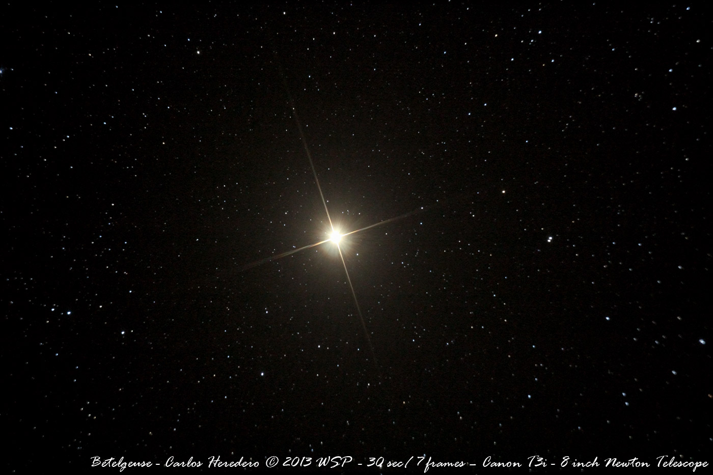 Betelgeuse en medio de miriadas de estrellas. Esta fue la primera prueba del seguimiento y de la alineación.