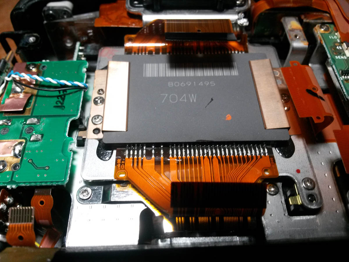 En el momento que tengamos ya el CCD al descubierto, veremos que hay dos placas de un material similar al cobre que la fijan por ambos lados, y estas estan fijadas con pequenos tornillos al chasis.