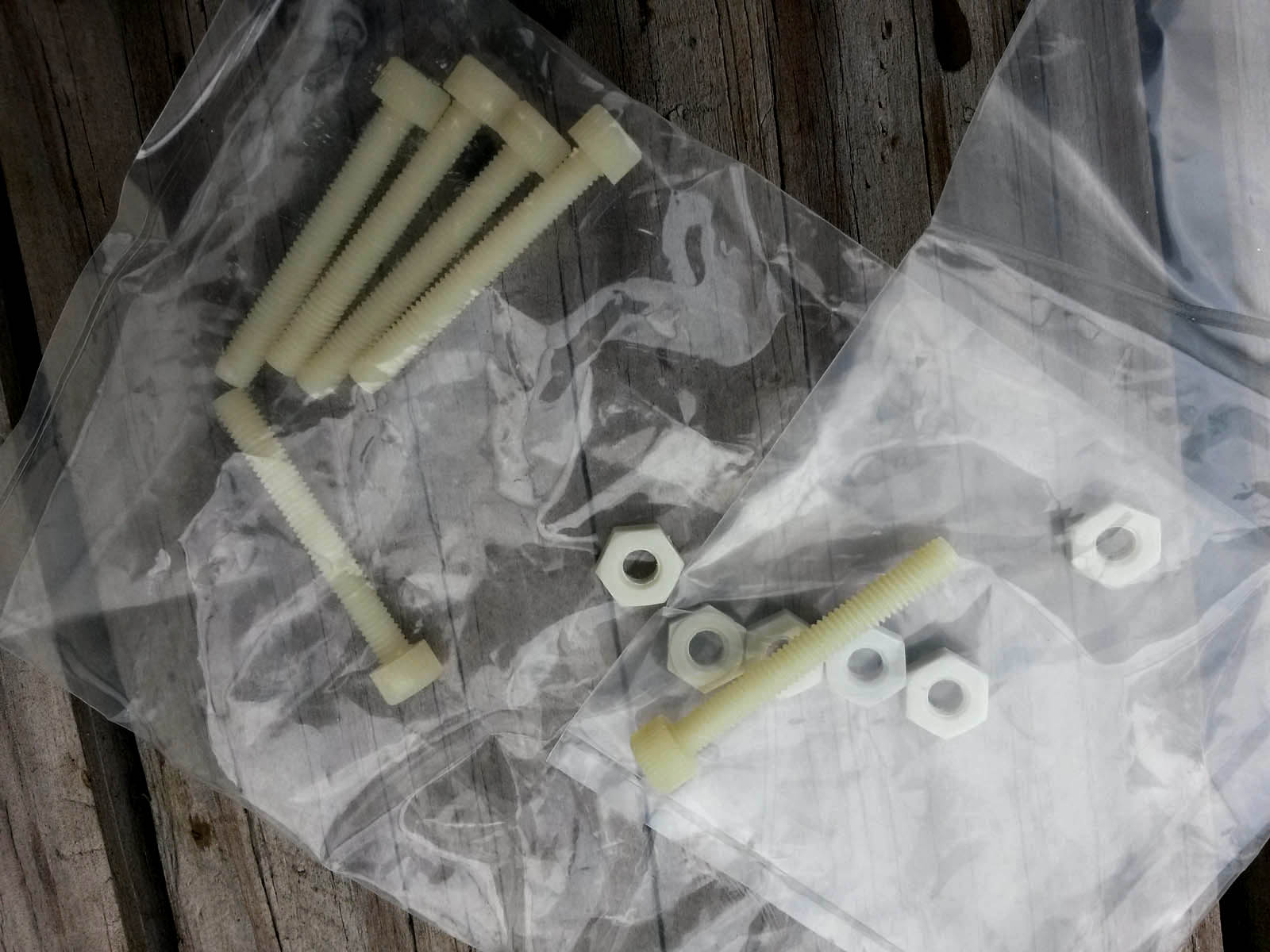 Tambien adquiri tornillos y tuercas de plastico, los que me permitirian unir el conjunto sin transferir calor hacia el lado frio del montaje.